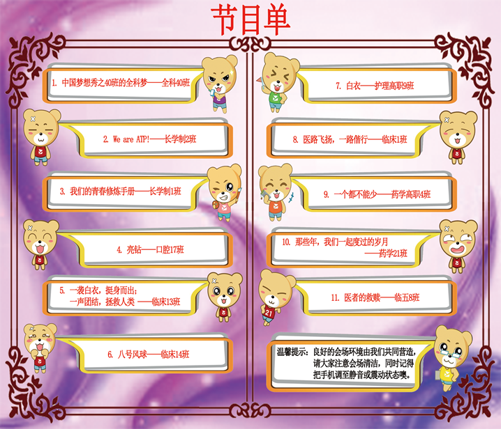 在这里,班级体的温情,定能拨动你的心弦;在这里,每一个精彩的演出,都是汗水的结晶和成长历程的写照;在这里,我们用2014级的成果,为2015级的启航加油助威。