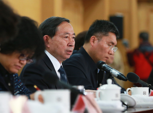 3月8日,教育部部长袁贵仁出席政协教育界别联组会,听取政协委员对教育工作的意见和建议,并与委员们坦诚交流。(本报记者 张学军/摄)