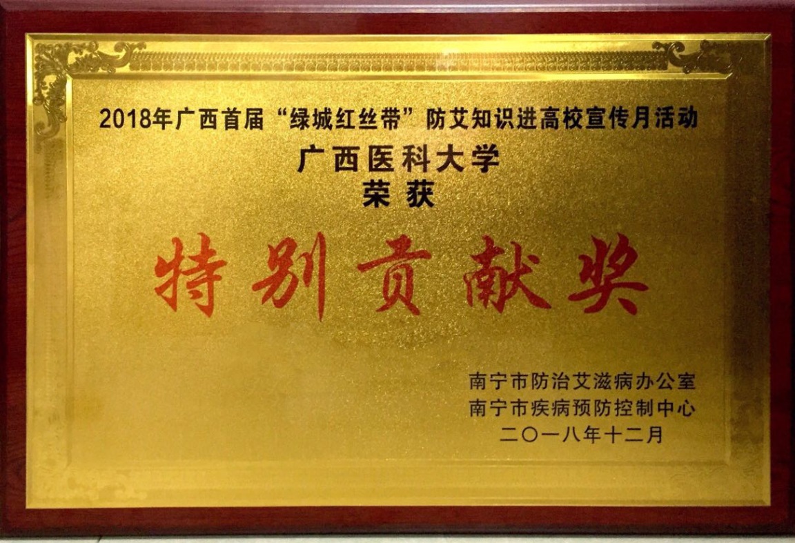 我校荣获广西首届“绿城红丝带”防艾宣传进高校系列活动“特别贡献奖”称号