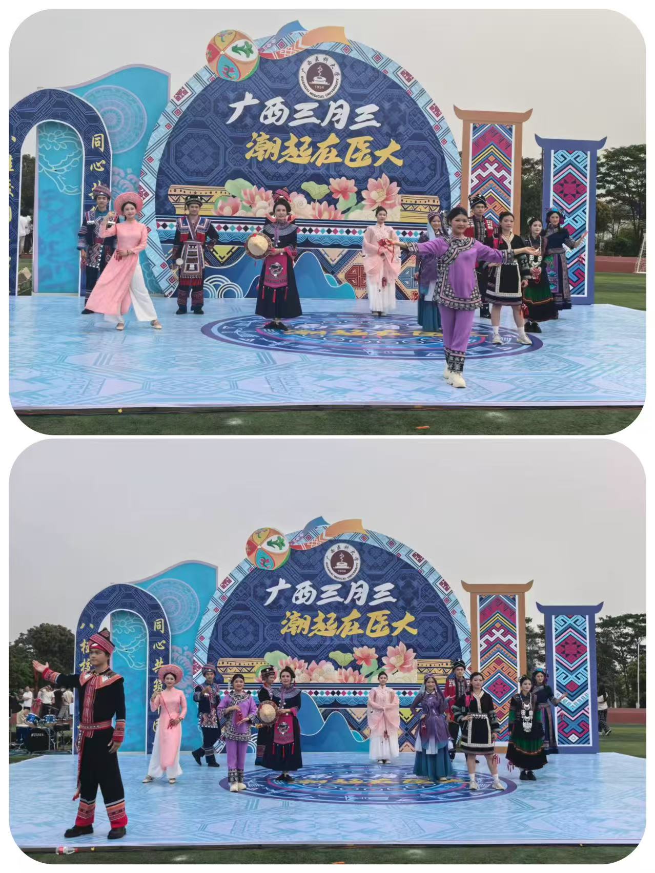 辅导员自主编排并参与表演,积极传播壮锦、苗绣、竹编等非物质文化遗产知识,推动铸牢中华民族共同体意识教育从课堂走向舞台。下一步,我校将继续以民族传统节日为契机,开展更多贴近青年、形式新颖的思政实践活动,引导医大学子坚定文化自信、凝聚团结力量,以青春担当铸牢中华民族共同体意识。